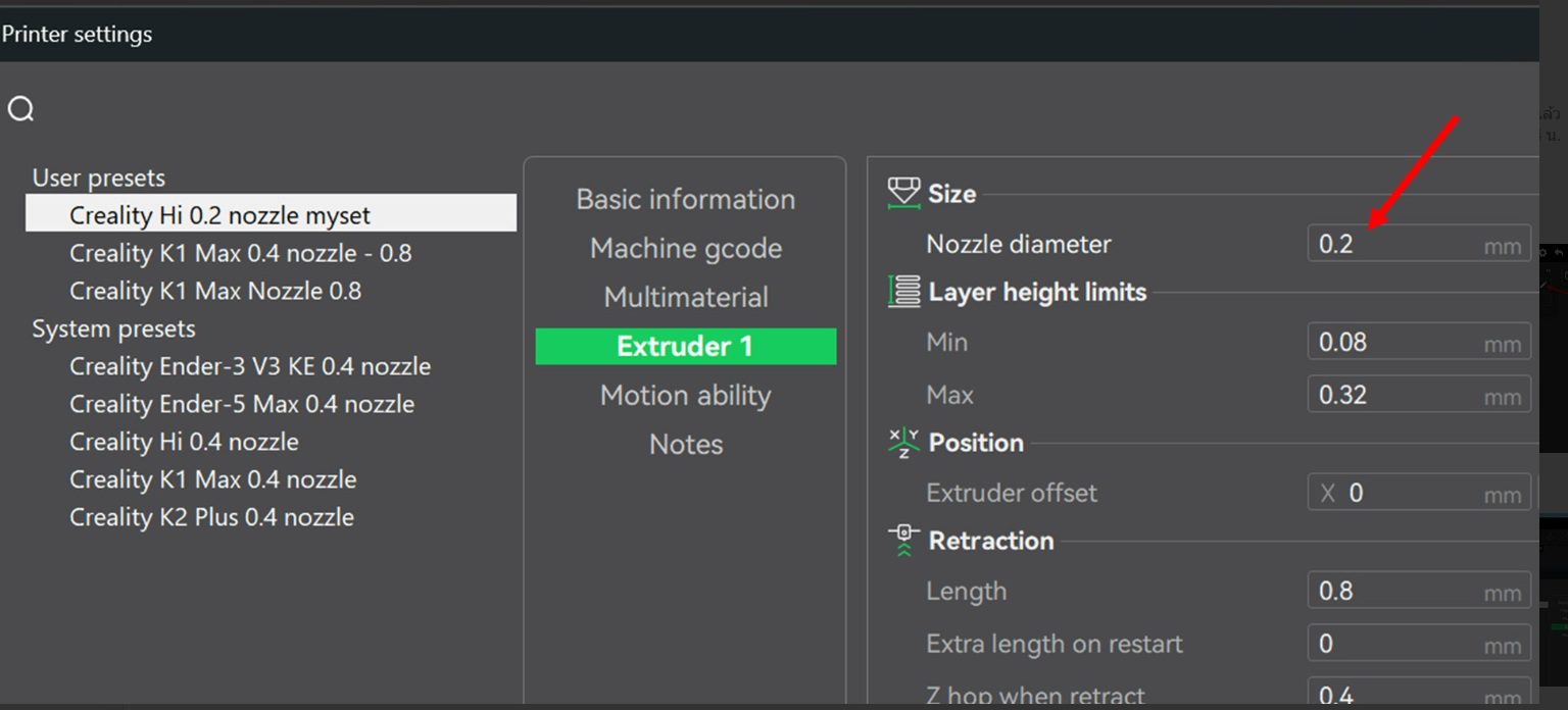 ปรับให้งานแนียนขึ้น ลองปรับเฉพาะตรงที่วงไว้ครับ อาจจะลองที่ 0.05 , 0.1 , 1.2 ความเนียนอาจไม่ต่างกันมากครับ แต่เวลาพิมพ์เพิ่มขึ้นแน่นอน