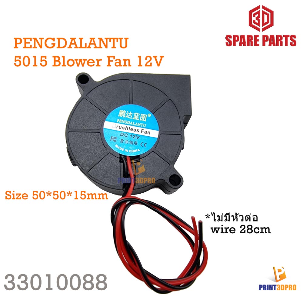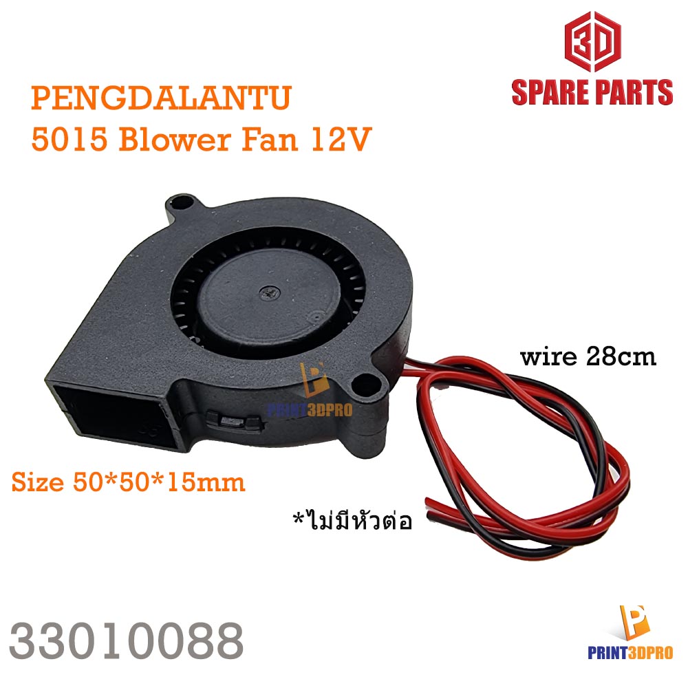 3D Part / Computer Part อะไหล่พัดลม Model : 5015 Blower Fan Tecnology : Brushless Fan Volt DC : 12V , 24V wire Long : 280mm RPM : 4800 RPM +- 10% Dimension : 50*50*15mm |