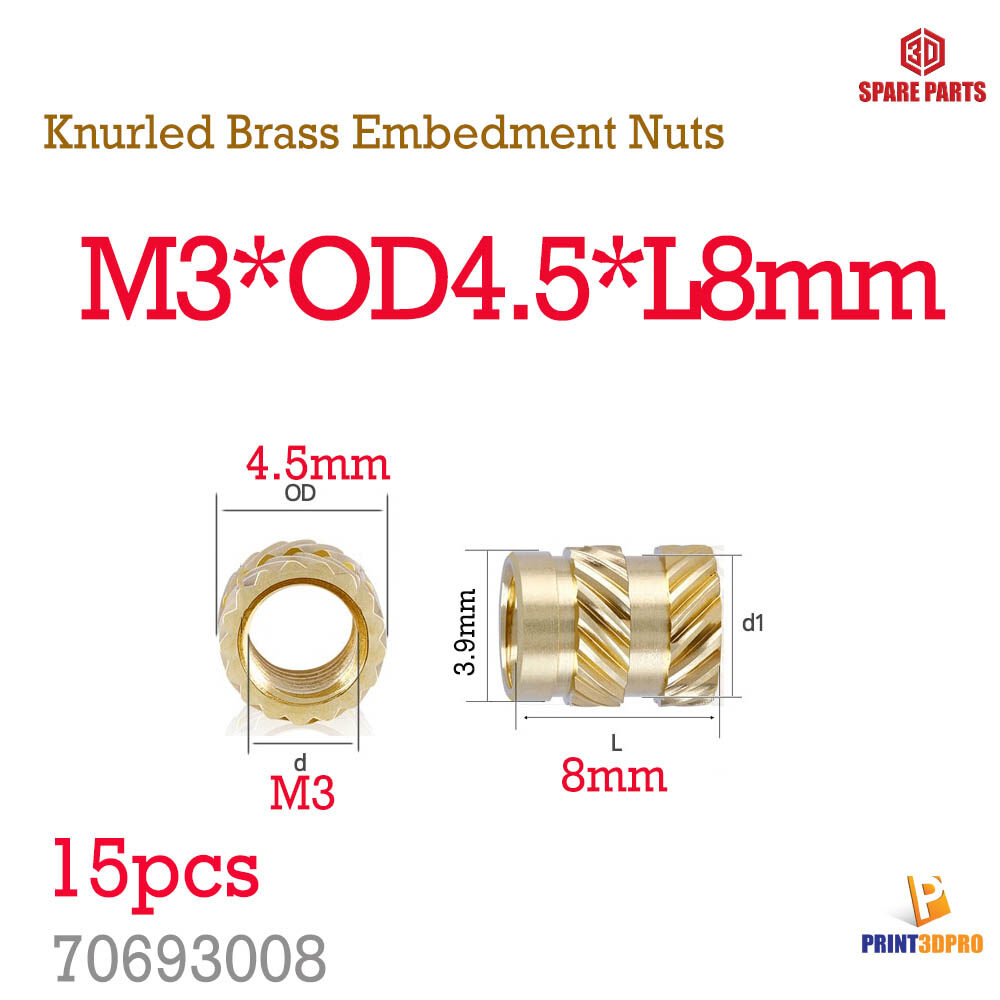 Screw nut M2 , M2.5 , M3 , M4 Knurled brass embedment nuts insert nut injection Material : brass thread : M2 , M2.5 , M3 , M4 , M5 Length : 4mm/6mm / 8mm / 10mm Quantity 15pcs/type |