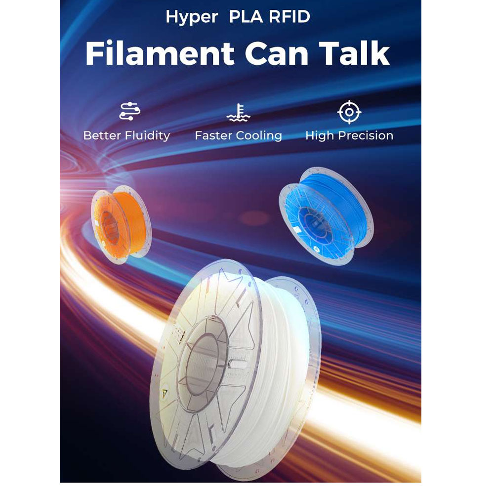 ทำให้เครื่องพิมพ์ที่รองรับจะสามารถระบุสีและชนิดของม้วนได้โดยอัตโนมัต รุ่นที่รองรับ Creality Hi Combo / K2 Combo / K2 Pro Combo / K2 Plus Combo / K1 Series ที่อัพเกรดชุด CFS และมีกล่อง CFS