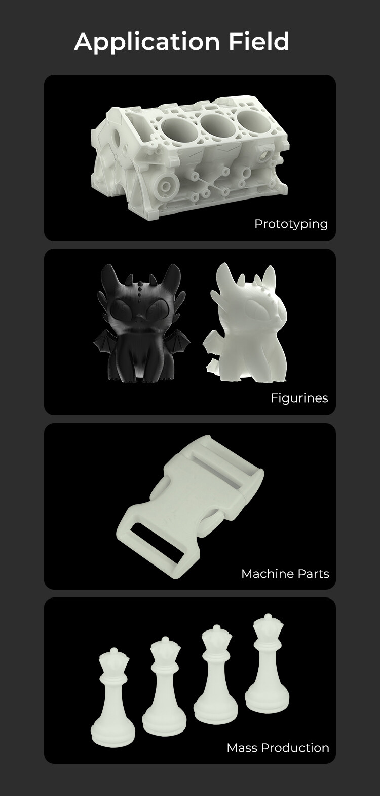 ——เหมาะสำหรับการสร้างต้นแบบ โมเดลฟิกเกอร์ ชิ้นส่วนปลายทาง และการผลิตแบบกลุ่มในโรงงาน ฯลฯ