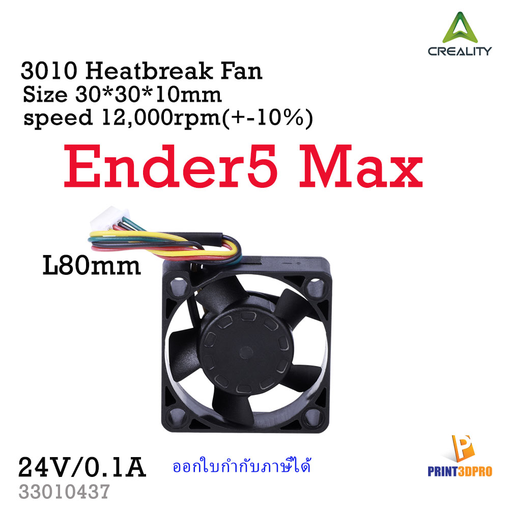 Brand : Creality Size : 30*30*10mm cable length : 80mm DC : 24V / 0.1 A Speed : 12,000rpm(+-10%) Compatible : Ender5 Max ![]() ![]() ![]() |