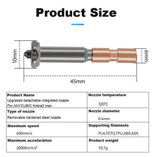 Brand : OEM Nozzle Size : 0.4mm Compatible : Anycubic Kobra3 Max ![]() ![]() ![]() ![]() ![]() |